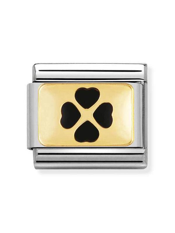 Composable Classic Dekoratif Link - Plakalar - Siyah Dört Yaprak Yonca - 18K Altın