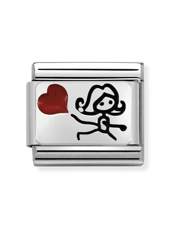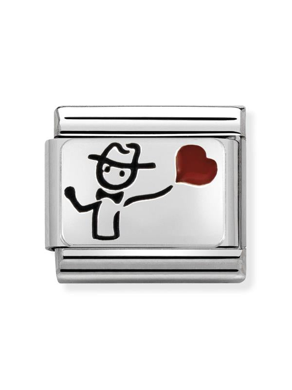 Composable Classic Dekoratif Link - Plakalar Oksitlenmiş - Kalp balonu ile - 925 Gümüş
