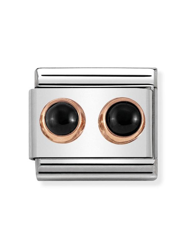 Composable Classic Dekoratif Link - İkili Taşlar - Siyah Akik - 9K Rose Altın